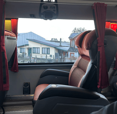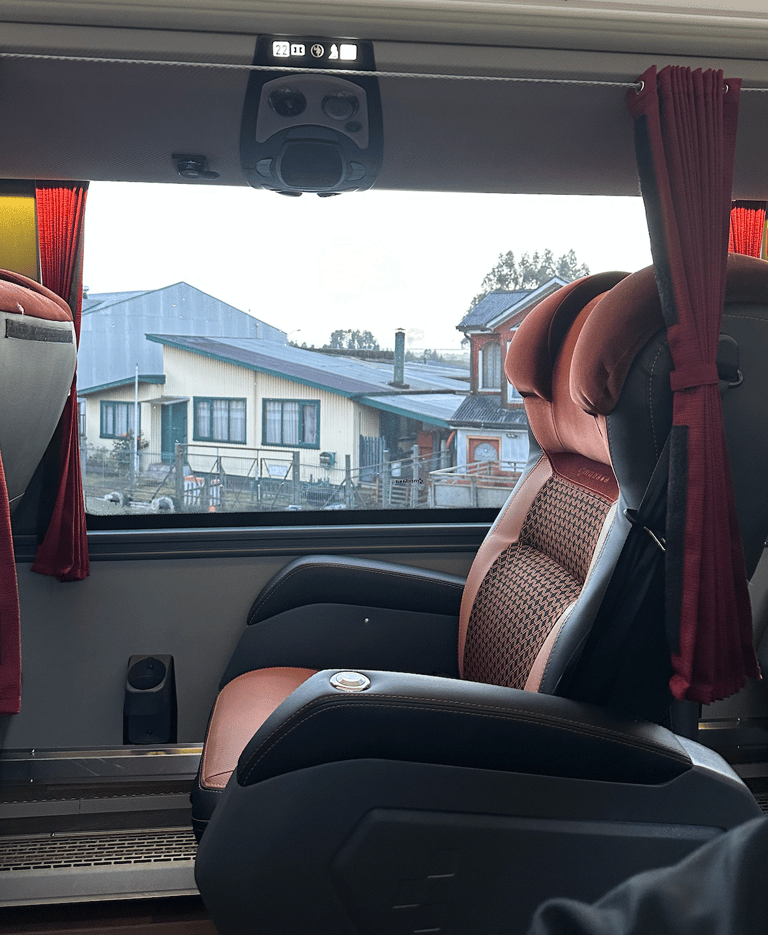 Putovali smo autobusom s otoka Chiloé do Valdivije (oko 6 sati). Autobus je stajao u Puerto Monttu. Cijena je bila oko 20 eura. ETM autobus je imao ogromna sjedala sa zavjesama, odlična za spavanje.