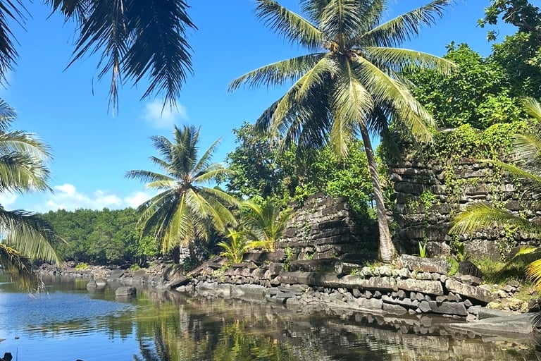 Sljedeći dan, taksist je došao po mene. Dogovorili smo se za obilazak otoka za 50 USD. Mislila sam da će vrhunac biti slapovi i Nan Madol, ali pokazalo se da je bilo još nevjerojatnije. Nan Madol jedno je od najtajanstvenijih arheoloških nalazišta u Pacifiku. Često ga nazivaju “Venecijom Pacifika”. Radi se o ogromnom sustavu od preko 100 umjetnih otočića izgrađenih na laguni pored otoka Temwen. Između otprilike 1200. i 1500. godine velike bazaltne kolone transportirane su i složene bez modernih alata ili žbuke kako bi se stvorio ceremonijalni grad. Danas su ruševine djelomično potopljene u mangrovama i plimskim vodama, stvarajući gotovo nadrealnu atmosferu izgubljenog svijeta.